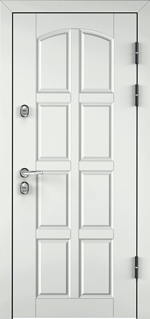 Эта классическая белая входная дверь с прямоугольниками №29 привнесет элегантность и надежность в ваш дом. Ее конструкция состоит из профильных труб 50х25 мм и листа металла толщиной 2 мм, что гарантирует высокую прочность. Внешняя и внутренняя отделка из МДФ придает двери стильный вид, а устойчивость к повреждениям позволяет сохранить первоначальный облик на долгие годы. Благодаря двухконтурному резиновому уплотнителю, дверь эффективно защищает от холода и шума. Замки Просам и Мосрентген с тремя ригелями обеспечивают надежную защиту от несанкционированного доступа. Кроме того, в эту модель можно добавить стеклопакет, зеркало или кованые элементы, адаптируя дверь под любые дизайнерские решения. Классическая белая входная дверь в частный дом с прямоугольниками №29 от производителя: быстрое изготовление и монтаж в Подольске, индивидуальные размеры, широкий выбор материалов и фурнитуры, официальная гарантия до 10 лет.