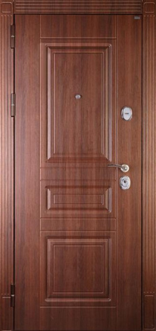 Входная металлическая дверь на заказ с МДФ №567 сочетает в себе надежность стали и эстетичность древесной отделки. Такая модель одинаково органично смотрится в частном доме, квартире или офисе, обеспечивая солидный внешний вид и высокий уровень защиты. Конструкция собрана из профильных труб с ребрами жесткости и дополнена листом металла толщиной 2 мм, что делает дверь устойчивой к механическим нагрузкам и попыткам взлома. Внутренняя и внешняя стороны оформлены МДФ накладками, которые придают поверхности аккуратный вид, легко поддаются чистке и сохраняют цвет даже при длительной эксплуатации. Два контура уплотнения защищают от сквозняков, а возможность дополнительной шумо- и теплоизоляции делает изделие более универсальным. Несмотря на массивность, дверь выглядит аккуратно и современно, подчеркивая статус владельца и добавляя интерьеру завершенности. Входная металлическая дверь на заказ с МДФ №567 от производителя: быстрое изготовление и монтаж в Подольске, индивидуальные размеры, широкий выбор материалов и фурнитуры, официальная гарантия до 10 лет.