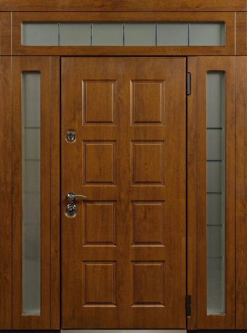 Полуторная дверь с фрамугой из массива №18 — это надежное и эстетичное решение для вашего интерьера. Благодаря внешней отделке из накладки МДФ, она отличается не только стойкостью к внешним воздействиям, но и сохраняет привлекательный вид на протяжении многих лет. Конструкция из профильной трубы 50х25 мм и лист металла толщиной 2 мм обеспечивает прочность, а ребра жесткости усиливают стойкость двери к нагрузкам. Замки от «Просам» и «Мосрентген» с тремя ригелями обеспечивают высокий уровень безопасности. Резиновый уплотнитель с двумя контурами защищает от холода и шума, создавая комфорт в помещении. Возможность добавления зеркала, стеклопакета или кованых элементов позволяет индивидуализировать внешний вид двери в соответствии с вашими предпочтениями. Полуторная дверь с фрамугой из массива №18 от производителя: быстрое изготовление и монтаж в Подольске, индивидуальные размеры, широкий выбор материалов и фурнитуры, официальная гарантия до 10 лет.