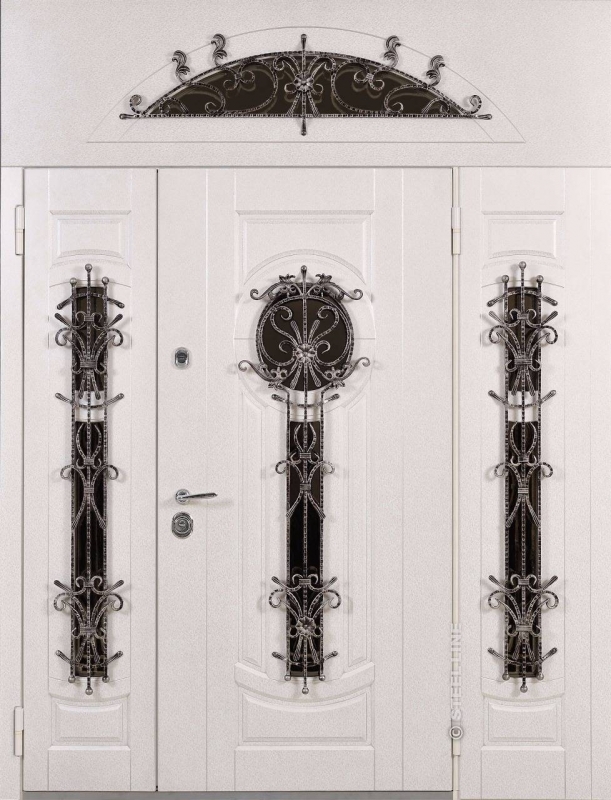 Входная дверь с кованой ручкой и фрамугой №6 представляет собой элегантное и надежное решение для тех, кто ценит не только безопасность, но и стиль. Эта модель идеально подойдет для оформления парадных входов в дома и офисы. Внешняя отделка из плиты МДФ придает двери современный и чистый вид, который сохраняется долго благодаря стойкости к внешним воздействиям. Благодаря профильной трубе с толщиной металла 2 мм и ребрам жесткости, конструкция двери гарантирует прочность и долговечность. Дополнительный элемент — кованая ручка, которая добавляет изысканности и подчеркивает высокий класс изделия. Стандартная комплектация не включает шумо- и теплоизоляцию, однако она может быть установлена по желанию. Резиновый уплотнитель с двумя контурами обеспечит хорошую герметичность, защищая от ветра и пыли. Подходит для установки как в частных домах, так и в офисах, привлекая внимание своим необычным и стильным дизайном. Входная дверь с кованой ручкой и фрамугой №6 от производителя: быстрое изготовление и монтаж в Подольске, индивидуальные размеры, широкий выбор материалов и фурнитуры, официальная гарантия до 10 лет.