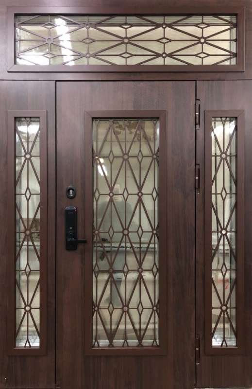 Входная дверь с декоративным рисунком и фрамугой №8 сочетает в себе элегантность и надёжность. Внешняя и внутренняя отделка из панелей МДФ с ПВХ покрытием обеспечивают долговечность и лёгкость в уходе, сохраняя стойкость к внешним воздействиям и механическим повреждениям. Каркас из профильной трубы 50x25 мм и лист металла толщиной 2 мм придают двери прочность, а ребра жесткости из труб 40x25 мм усиливают её устойчивость. Несмотря на отсутствие терморазрыва, конструкция двери с двумя контурами уплотнителей гарантирует отличную изоляцию от холода и шума. Такая дверь идеально подойдёт для установки в местах, где важен стильный внешний вид и безопасность. Входная дверь с декоративным рисунком и фрамугой №8 от производителя: быстрое изготовление и монтаж в Подольске, индивидуальные размеры, широкий выбор материалов и фурнитуры, официальная гарантия до 10 лет.