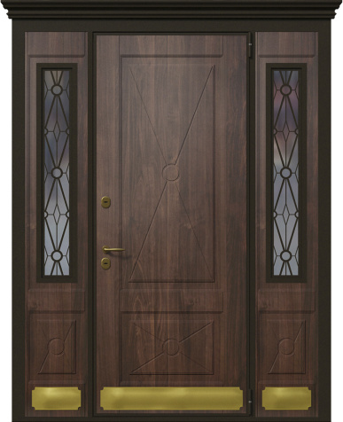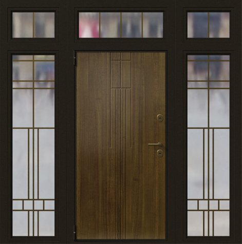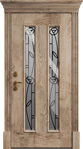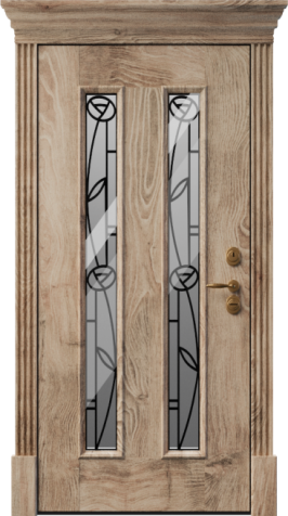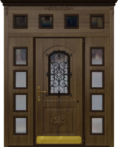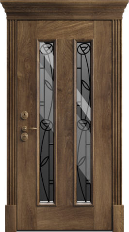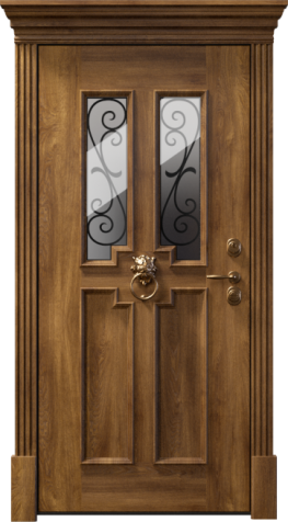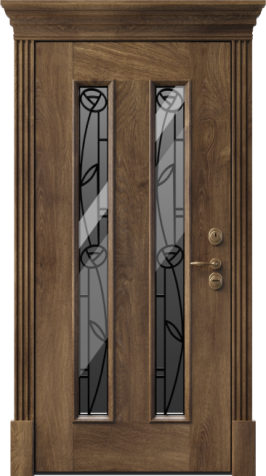 Входная дверь в дом со стеклом и ковкой №6