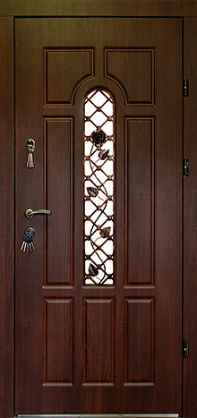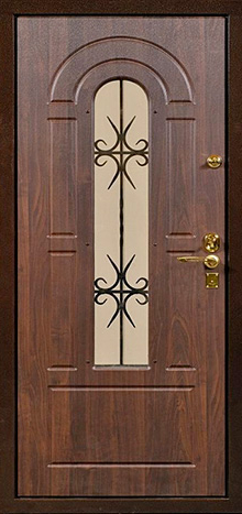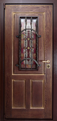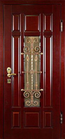 Входная дверь с ковкой и стеклом №12
