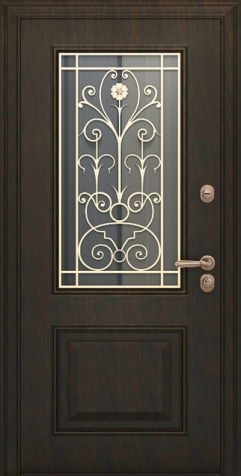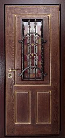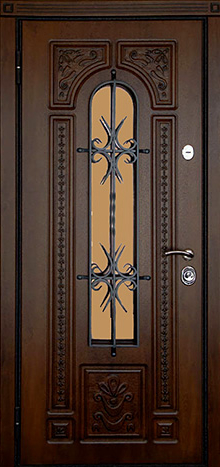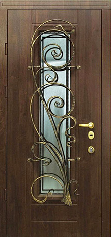 Дверь входная с ковкой и стеклопакетом №28