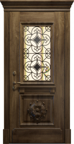 Входная дверь со стеклом и ковкой для загородного дома №16