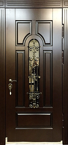 Большая выходная дверь со стеклом и ковкой №4