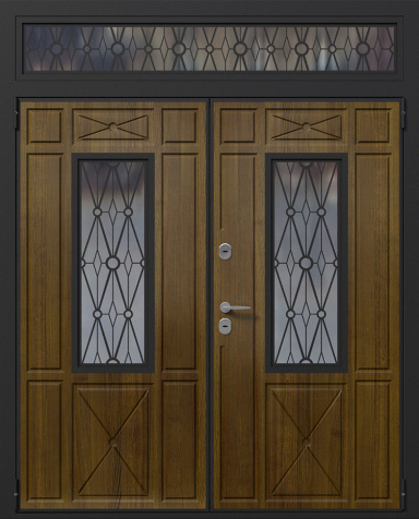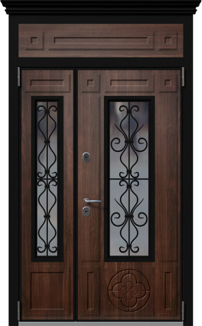 Двухстворчатая дверь со вставками и ковкой №2