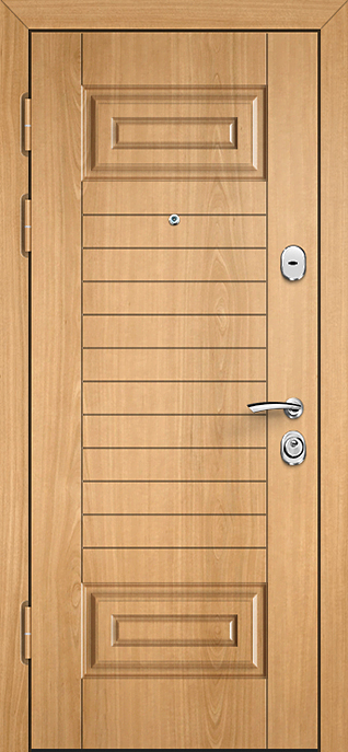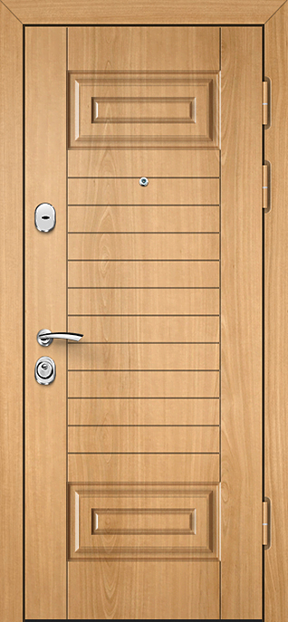 Металлическая конструкция с листом стали толщиной 2 мм и жёстким каркасом из профильной трубы формирует основу, которая не подведёт ни в квартире, ни в офисе. Два контура резинового уплотнителя делают закрывание плотным, уменьшая шум и сквозняки, а наличие блокираторов повышает уровень безопасности. Внешняя и внутренняя отделка выполнена из МДФ ПВХ — материал прочный, устойчивый к мелким повреждениям и сохраняющий аккуратный вид при ежедневной эксплуатации. В центре внимания здесь Железная дверь в квартиру №78, сочетающая надёжность стали и декоративные возможности панелей, которые можно комбинировать по вкусу. Комплект замков представлен сувальдным Просам и цилиндровым Мосрентген, при этом доступна замена на более сложные механизмы вплоть до биометрических систем. Конструкцию легко дополнить зеркалом, стеклопакетом, коваными элементами или видеодомофоном, превратив строгую дверь в удобный и технологичный элемент современного жилья. Железная дверь в квартиру №78 от производителя: быстрое изготовление и монтаж в Подольске, индивидуальные размеры, широкий выбор материалов и фурнитуры, официальная гарантия до 10 лет.