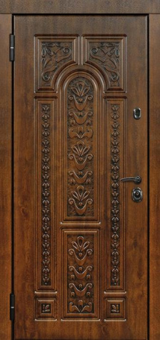 Входная дверь для квартиры чёрная №553 сразу выделяется строгим и уверенным характером. Глубокий тёмный оттенок придает конструкции солидность и универсальность — такая дверь одинаково уместна и в современном офисе, и в квартире, и в частном доме. Каркас выполнен из профильной трубы с металлическим листом толщиной 2 мм и усилен ребрами жесткости, что гарантирует высокую надежность и стойкость к взлому. С обеих сторон используется накладка МДФ, которая не только украшает полотно, но и обеспечивает стойкость к мелким повреждениям и износу, сохраняя аккуратный внешний вид долгие годы. Два контура уплотнения вместе с резиновыми вставками улучшают герметичность и комфорт при закрытии. Дверь гармонично сочетает практичность металла и элегантность декоративной отделки, создавая впечатление уверенности и защищенности уже с первого взгляда. Входная дверь для квартиры чёрная №553 от производителя: быстрое изготовление и монтаж в Подольске, индивидуальные размеры, широкий выбор материалов и фурнитуры, официальная гарантия до 10 лет.