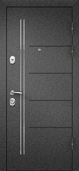 Порошковая входная дверь №65 объединяет прочность металла и практичную отделку, делая её универсальным выбором для квартиры, офиса или подъезда. Каркас и полотно собраны из профильной трубы, усиленной ребрами жесткости, а стальной лист толщиной 2 мм придает конструкции дополнительную устойчивость к нагрузкам. Снаружи нанесено молотковое напыление — покрытие, стойкое к царапинам и атмосферным воздействиям, благодаря чему дверь долго сохраняет аккуратный внешний вид. Внутренняя сторона оформлена ламинированными панелями, создающими ощущение тепла и комфорта. Два резиновых контура уплотнения помогают отсечь сквозняки и пыль, при необходимости можно добавить шумо- и теплоизоляцию. Модель №65 сочетает надежность и лаконичность, а её внешний вид гармонично впишется как в жилое пространство, так и в деловую среду. Порошковая входная дверь №65 от производителя: быстрое изготовление и монтаж в Подольске, индивидуальные размеры, широкий выбор материалов и фурнитуры, официальная гарантия до 10 лет.