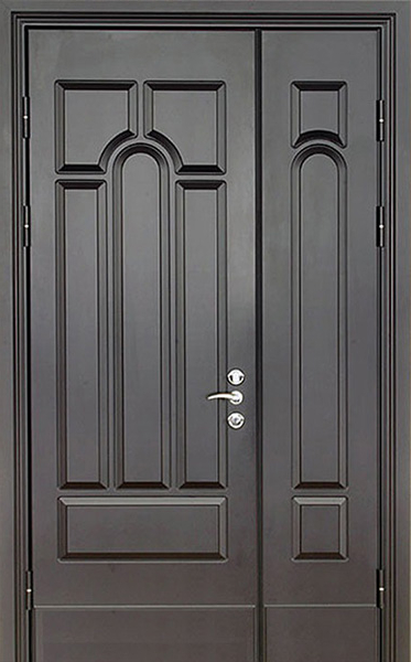 Металлическая двухстворчатая дверь для дома цвета графит №27 – это стильное и надежное решение для вашего жилья. Внешняя и внутренняя отделка выполнены из МДФ, что придает двери изысканный вид и увеличивает её стойкость к механическим повреждениям. Цвет графит придаёт двери современный и элегантный оттенок, который легко впишется в интерьер как частных домов, так и современных офисов. Металлическая двухстворчатая дверь для дома цвета графит №27 от производителя: быстрое изготовление и монтаж в Подольске, индивидуальные размеры, широкий выбор материалов и фурнитуры, официальная гарантия до 10 лет.