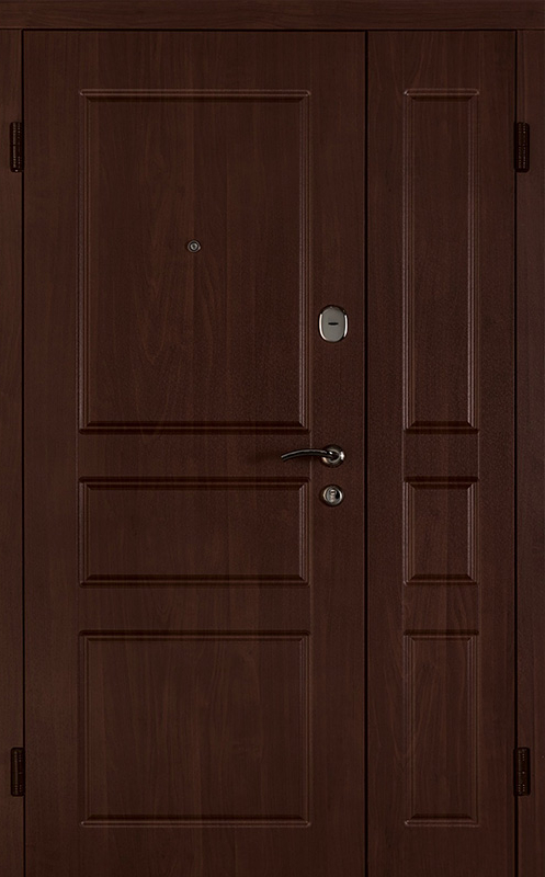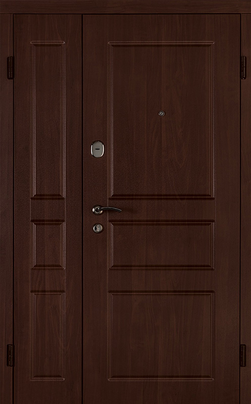 Коричневая входная полуторная дверь с филенчатой створкой №4 – это надежное и стильное решение для вашего дома или офиса. Внешняя и внутренняя отделка из МДФ с ПВХ обеспечивает долговечность и устойчивость к повреждениям, сохраняя при этом элегантный внешний вид. Прочные материалы конструкции, такие как профильная труба 50х25 мм и лист металла толщиной 2 мм, гарантируют стабильность и безопасность. Ребра жесткости из профильных труб 40х25 мм усиливают дверное полотно, а уплотнение с двумя контурами надежно защищает от внешних факторов. Несмотря на отсутствие терморазрыва, в двери реализованы терморазрывы в коробке и полотне, что помогает улучшить теплоизоляцию. Возможность выбора дополнительных опций, таких как шумоизоляция, делает эту дверь универсальной для различных условий эксплуатации. Коричневая входная полуторная дверь с филенчатой створкой №4 от производителя: быстрое изготовление и монтаж в Подольске, индивидуальные размеры, широкий выбор материалов и фурнитуры, официальная гарантия до 10 лет.