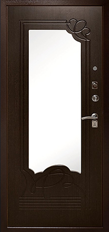 Входная дверь с зеркальной вставкой для прихожей №21 — это не просто надежное, но и стильное решение для частных домов, квартир и офисов. Благодаря прочному каркасу из профильной трубы 50х25 мм и металлическому полотну толщиной 2 мм, дверь гарантирует долговечность и высокую степень защиты. Внешняя отделка с порошковым напылением не только добавляет эстетичности, но и защищает от атмосферных воздействий, а внутренняя отделка из панелей МДФ ПВХ устойчива к механическим повреждениям. Вставка зеркала на двери добавляет современности и практичности, расширяя пространство прихожей. Два контура резинового уплотнителя эффективно предотвращают попадание холода и шума. Дверь оборудована двумя замками, что повышает безопасность. Также можно заменить замки на более современные модели и добавить опции, такие как стеклопакет или видеодомофон, что делает эту модель еще более универсальной. Входная дверь с зеркальной вставкой для прихожей №21 от производителя: быстрое изготовление и монтаж в Подольске, индивидуальные размеры, широкий выбор материалов и фурнитуры, официальная гарантия до 10 лет.