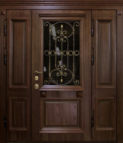 Входная металлическая дверь с порошковым покрытием, стеклом и ковкой в частный дом №27 — это не только надежность, но и стильное решение для вашего коттеджа или частного дома. Массив дерева, использованный в отделке снаружи и внутри, придаёт двери тепло и элегантность, в то время как прочная металлическая конструкция с профильной трубой и листом металла толщиной 2 мм обеспечивает долговечность и защиту. Стекло и кованые элементы добавляют изысканности, а порошковое покрытие защищает от внешних воздействий, сохраняя первоначальный вид. Терморазрыв в коробке и полотне помогает минимизировать теплопотери, а эффективная система уплотнения с двумя контурами гарантирует уют и тишину в вашем доме. Входная металлическая дверь с порошковым покрытием стеклом и ковкой в частный дом №27 от производителя: быстрое изготовление и монтаж в Подольске, индивидуальные размеры, широкий выбор материалов и фурнитуры, официальная гарантия до 10 лет.