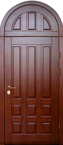 Высокая арочная входная дверь массив №26 идеально подчеркнет величие вашего частного дома или коттеджа. Внешняя и внутренняя отделка из массива дерева придают двери естественную красоту и изысканность. Каркас и полотно выполнены из профильной трубы 50х25 мм, с дополнительной жесткостью благодаря ребрам из профильных труб 40х25 мм и металлическому листу толщиной 2 мм. Элементы конструктивной прочности обеспечат долговечность, а два контура резинового уплотнителя гарантируют надежную герметичность. Несмотря на отсутствие терморазрыва, дверь остается надежной и безопасной, дополнительно оснащенной блокираторами для защиты. Эта дверь станет настоящим акцентом в вашем доме, сочетая эстетическую привлекательность и отличную защиту. Высокая арочная входная дверь массив №26 от производителя: быстрое изготовление и монтаж в Подольске, индивидуальные размеры, широкий выбор материалов и фурнитуры, официальная гарантия до 10 лет.