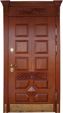 Эксклюзивная высокая входная дверь с железным отбойником №36 — это образец элегантности и функциональности, который идеально впишется в любой частный дом или коттедж. Изготовленная из массива дерева, она будет долго сохранять свой привлекательный внешний вид и устойчивость к внешним воздействиям. Прочная конструкция из профильных труб и листа металла толщиной 2 мм, усиленная ребрами жесткости, гарантирует надежность и долговечность. Терморазрыв в коробке и полотне помогает минимизировать теплопотери и защищает от перепадов температуры. Дверь оснащена высококачественными замками, что обеспечивает высокий уровень безопасности. Железный отбойник добавляет двери не только дополнительную защиту, но и стильный элемент дизайна. Эксклюзивная высокая входная дверь с железным отбойником №36 от производителя: быстрое изготовление и монтаж в Подольске, индивидуальные размеры, широкий выбор материалов и фурнитуры, официальная гарантия до 10 лет.